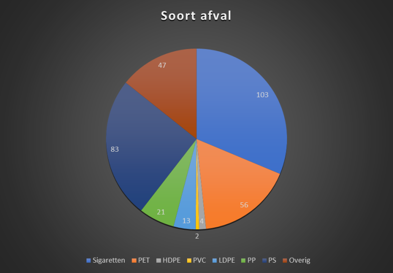 Voor deliverable 2 moesten we een duidelijk beeld geven wat voor soort afval er is en hoe groot het dan is. Bij deze tabel staat er wat voor soort afval er is. Ik ben tot de conclusie gekomen dat plastic en sigaretten vooral op straat gegooid worden.